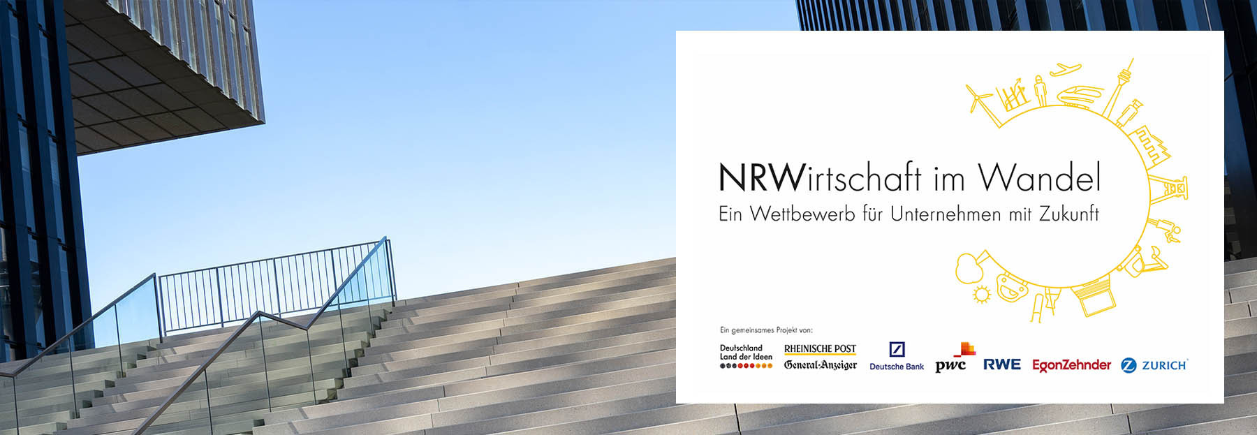 Ob traditionsreicher Großkonzern, familiengeführter Handwerksbetrieb oder aufstrebendes Startup - gesucht werden engagierte Unternehmen, dieHerausforderungen wie Digitalisierung oder Globalisierung mit neuen Lösungen begegnen und den wirtschaftlichen Transformationsprozess in NRW aktiv mitgestalten. Der Wettbewerb „NRW – Wirtschaft im Wandel“ wird von „Deutschland – Land der Ideen“ gemeinsam mit der Rheinischen Post und dem General-Anzeiger Bonn unter Schirmherrschaft des Wirtschaftsministeriums Nordrhein-Westfalens durchgeführt.